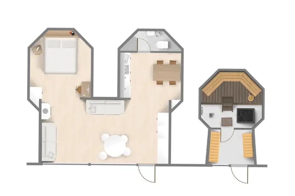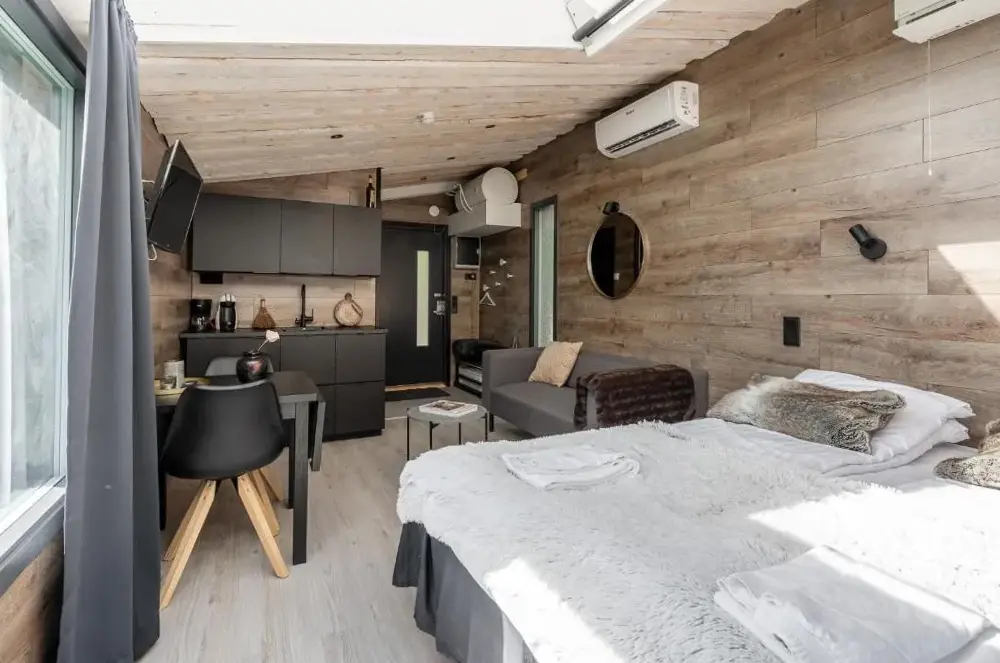 More information about Varjola Holiday CenterGlass Igloos by the water - Lasisviitit offers a unique lodging experience nestled in a serene setting. Guests can enjoy the tranquil surroundings while staying in transparent igloo accommodations. The location provides easy access to nearby attractions such as Maalaisbistro Sylvi, which is just 200 meters away, and Varjolan Tila, also located 200 meters from the property.