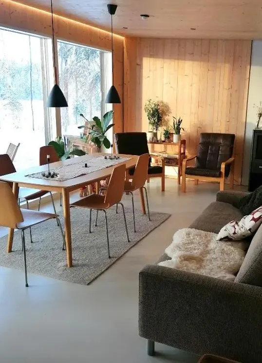 Ilveslinna offers a peaceful retreat located at 112 Ilveslahdentie, 41330 Laukaa, Finland. Guests praise the house for its modern appearance, elegant decor, and warm ambiance, making it an ideal choice for those seeking comfort and charm. The surrounding landscape provides stunning vistas, enhancing the overall experience.